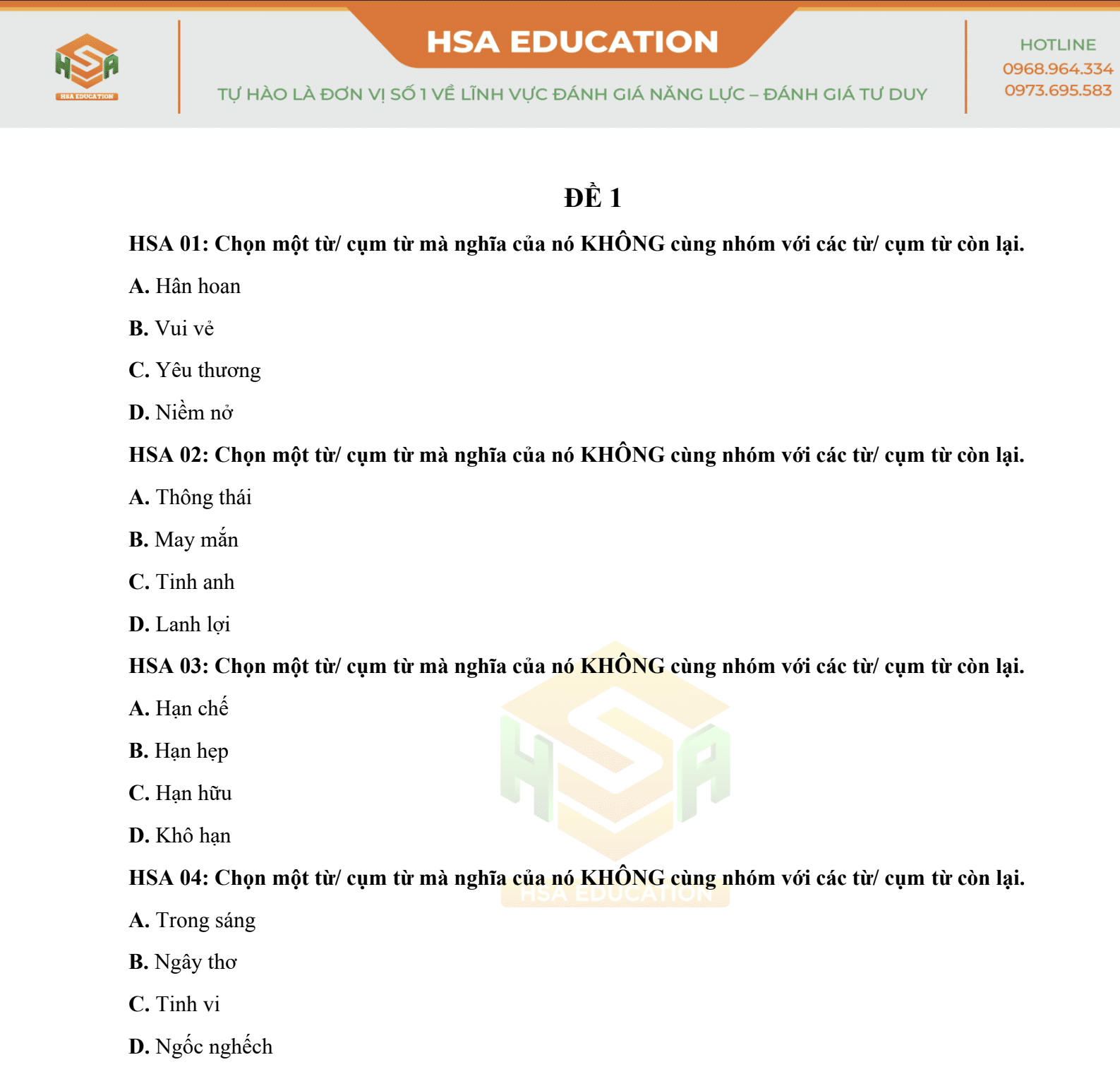 • Tăng khả năng tư duy logic: Đề bài yêu cầu bạn phân tích, so sánh, nhận diện các mối quan hệ giữa từ ngữ, phát triển tư duy sắc bén.