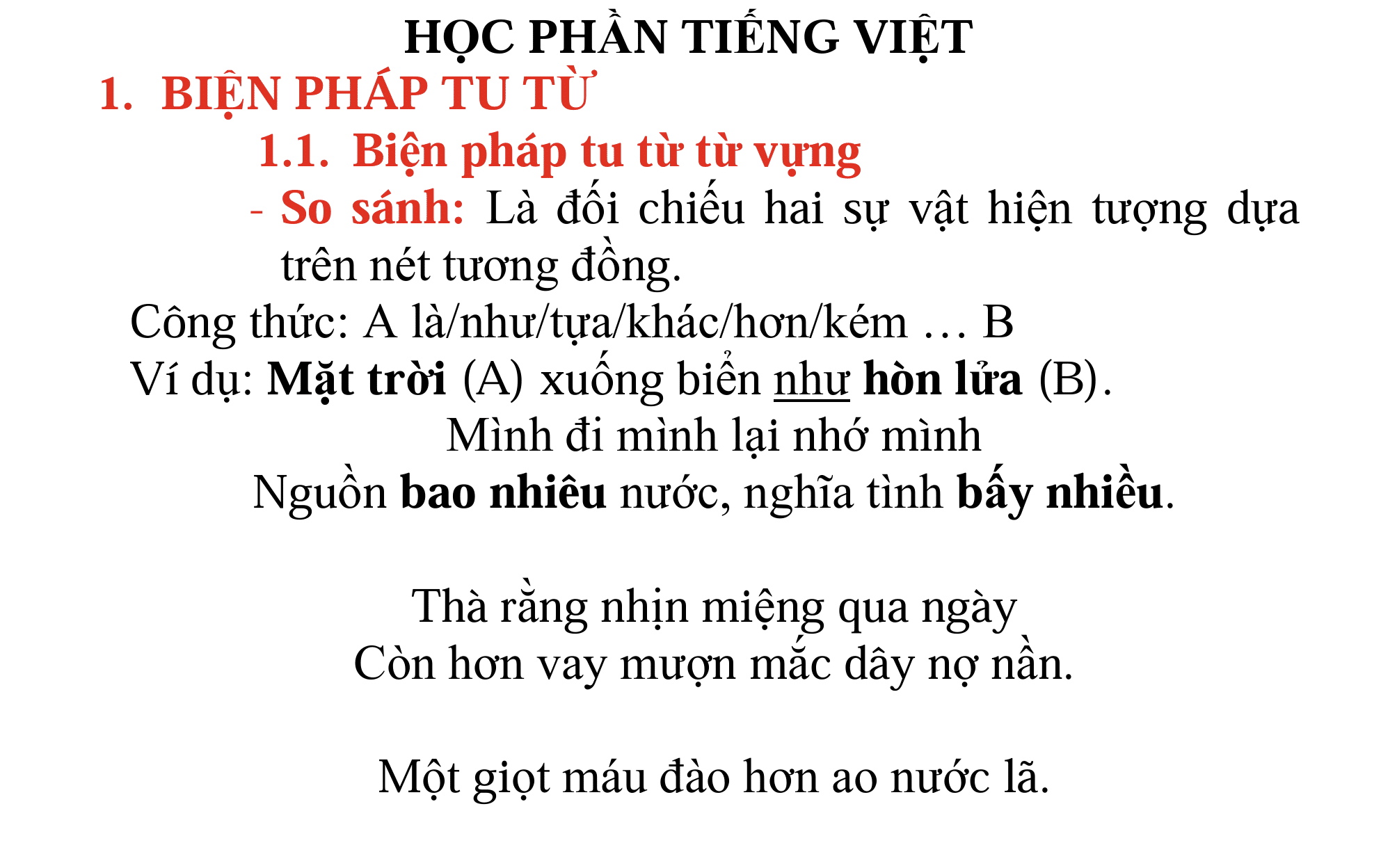 - Biện pháp tu từ: Nhận biết, phân tích tác dụng của các biện pháp tu từ trong văn bản.