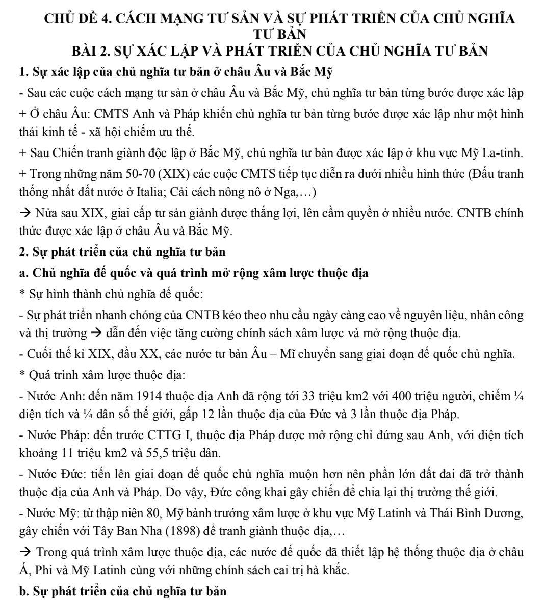 Chào các bạn học sinh! Thời kỳ các cuộc cách mạng tư sản và sự trỗi dậy của Chủ nghĩa Tư bản (CNTB) là giai đoạn biến động. Nó đã định hình bộ mặt thế giới hiện đại. Cùng ôn lại những điểm chính nhé!