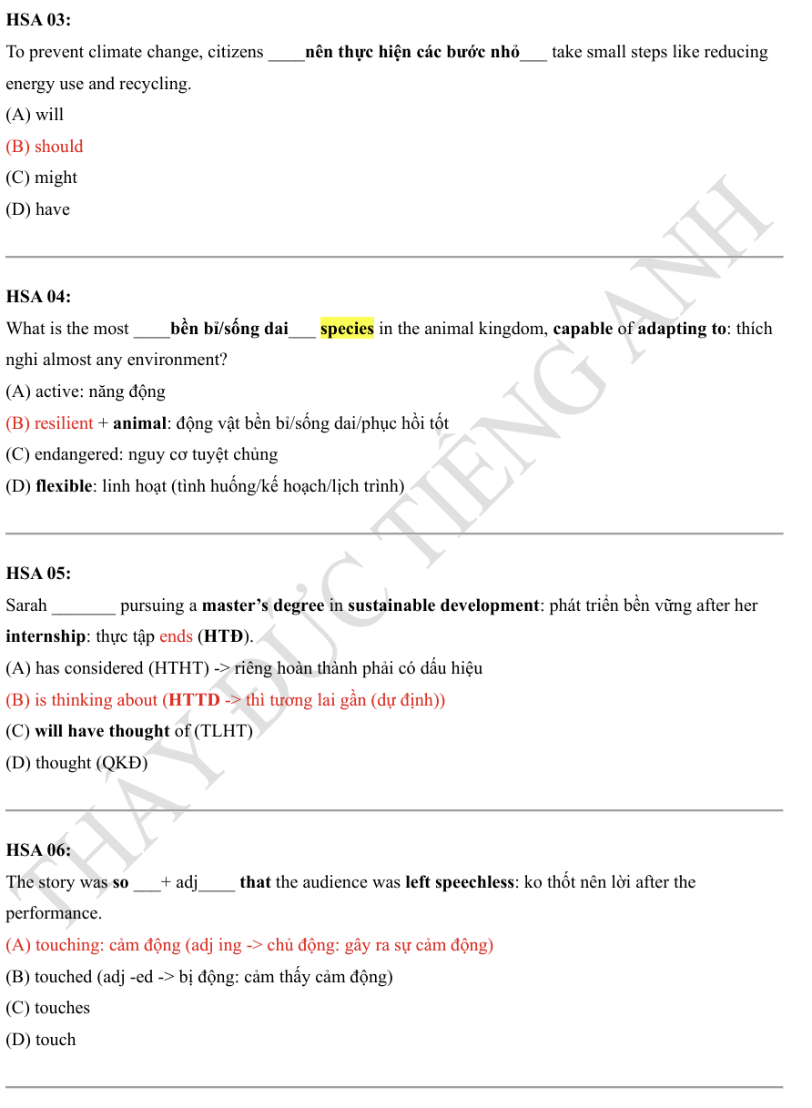 - Đọc kỹ phần giải thích của đáp án để hiểu tại sao một phương án là đúng.
