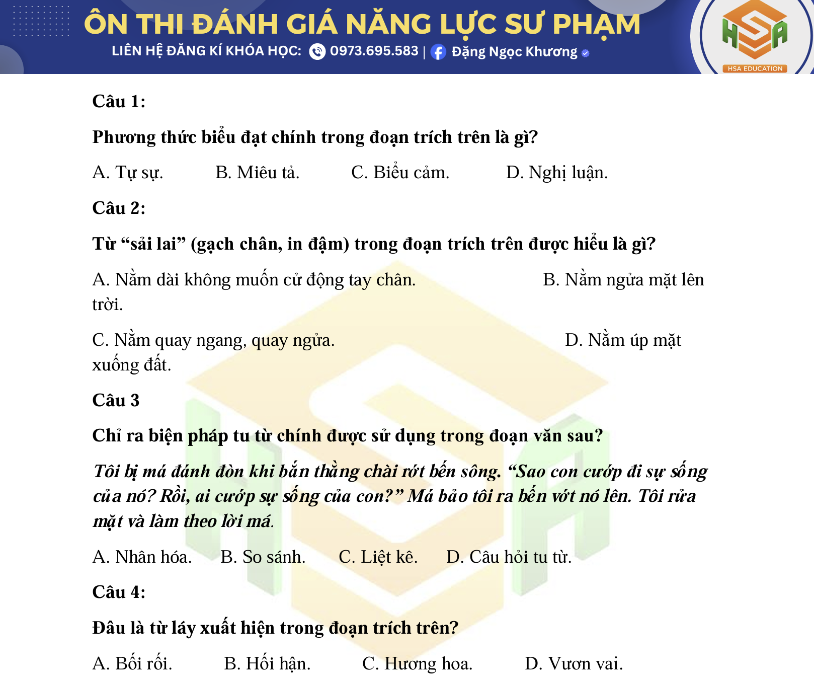 📚 ĐỀ ĐÁNH GIÁ NĂNG LỰC SƯ PHẠM – MÔN VĂN 📚