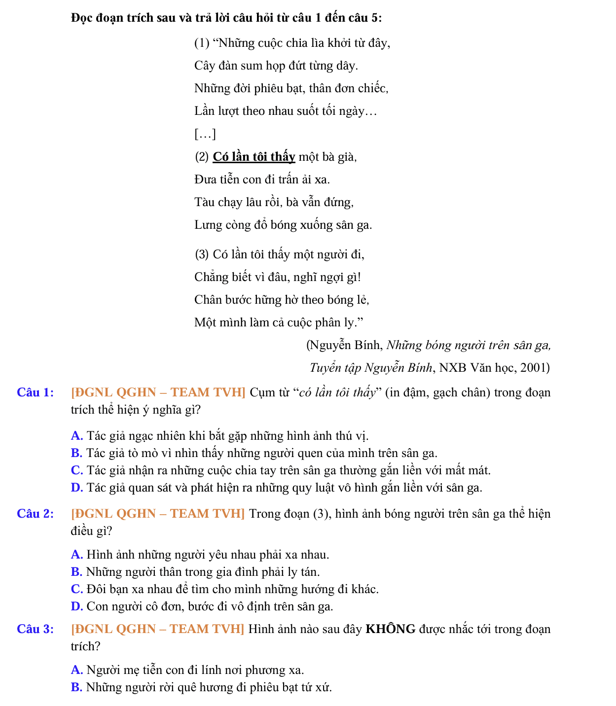 - Đọc kỹ câu hỏi trước khi chọn đáp án.
