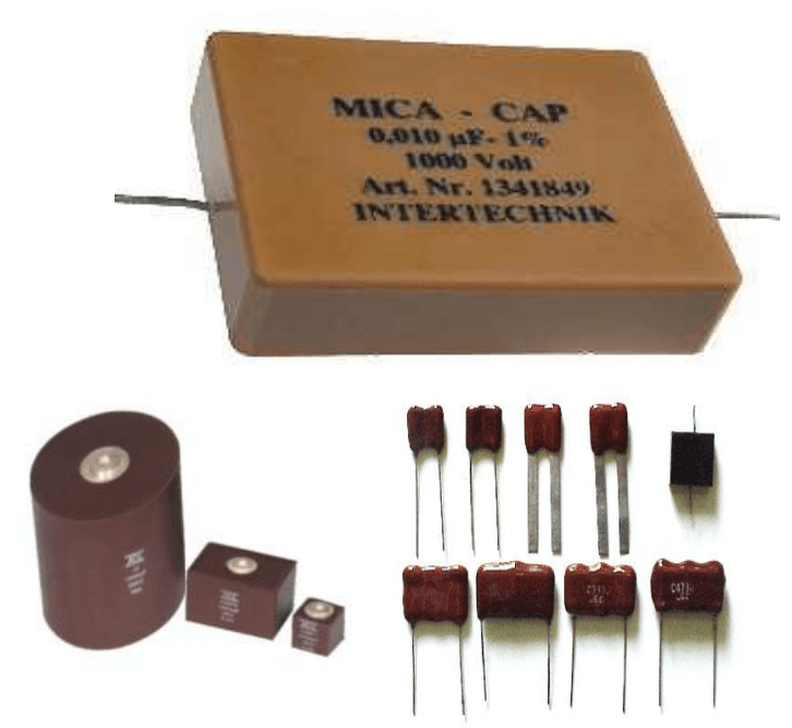 - Cấu tạo: Bản tụ bằng nhôm hoặc thiếc, điện môi là mica.