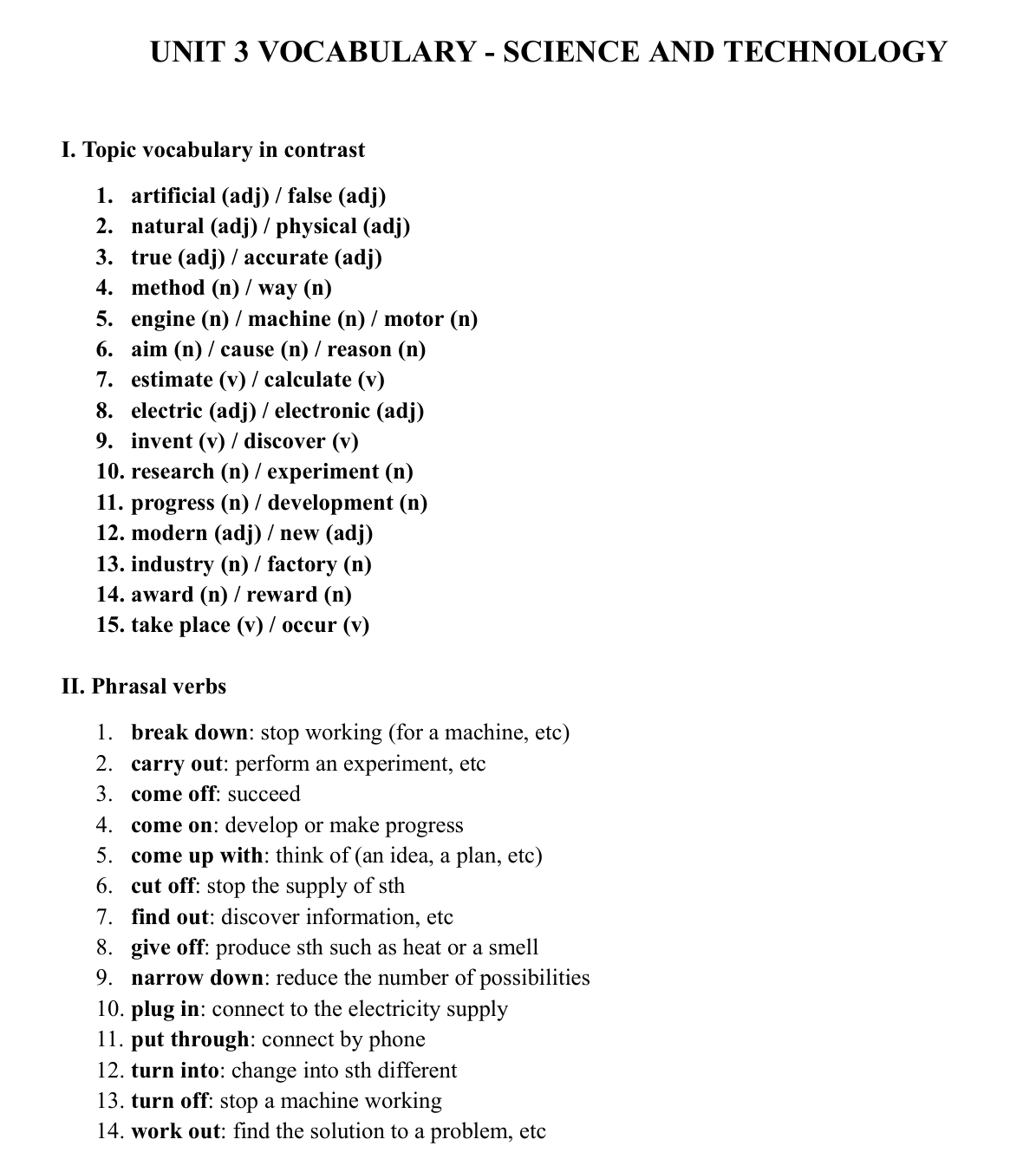 UNIT 3 VOCABULARY – SCIENCE AND TECHNOLOGY